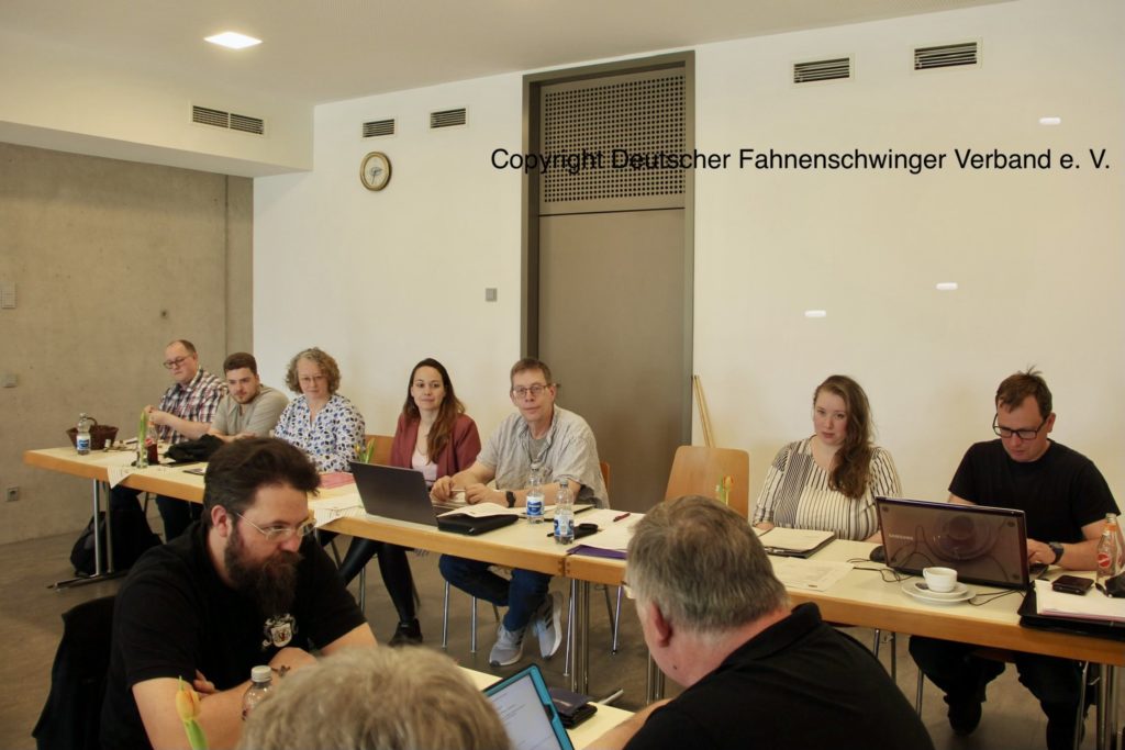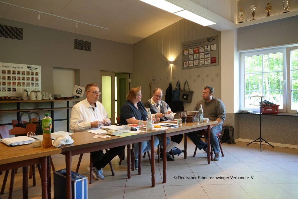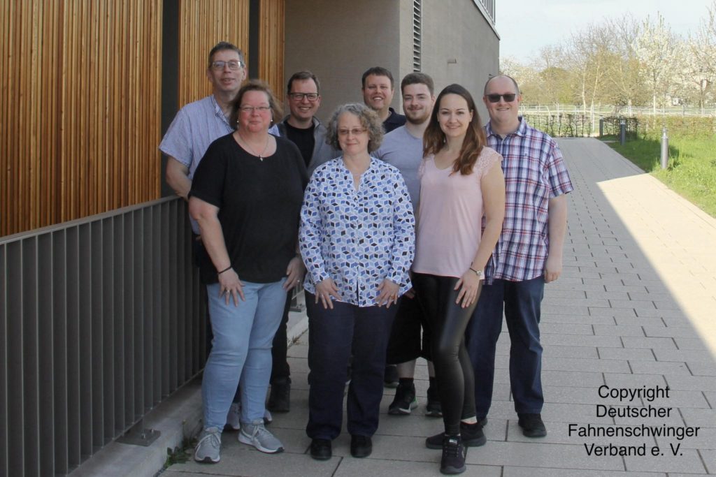 Hintere Reihe von links: Michael Kriescher Präsident, Benjamin Thom 2. Schriftführer, Bernd Gahr Fachreferent Fahnenschwingen, Felix Schlaich Archivar